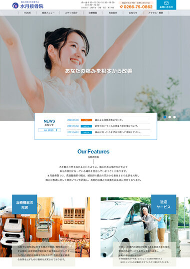 2023年05月08日(月) 当院のウェブサイトを公開しました。 平素は格別のお引き立てを賜り誠に有難うございます。 この度、水月接骨院のウェブサイトを公開いたしました。 ウェブサイトでは当院の様々な情報やお知らせを発信してまいりますので、是非ご覧ください。 スマートフォンからも快適にご利用いただけるよう対応しております。 今後もお届けする情報の充実含め、より良いサービスの提供を目指してまいりますので、引き続きよろしくお願い致します。